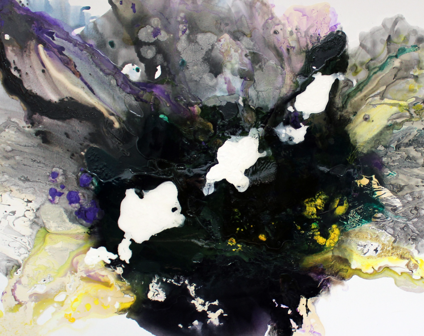 The gestural working practice of the American Abstract artist Jackson Pollock, and the way in which he poured paint onto a horizontal canvas was a major influence. By using his “drip technique” and layering wet on wet paint results in a painting with a feeling of movement and total spontaneity.